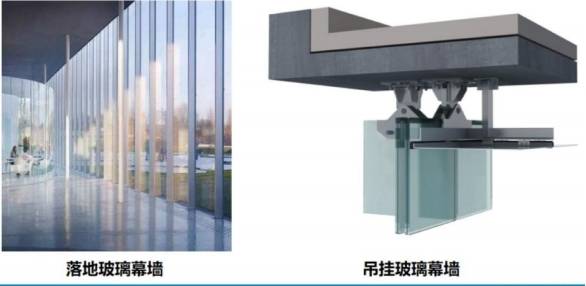 主要分为∶落地玻璃幕墙、吊挂玻璃幕墙。